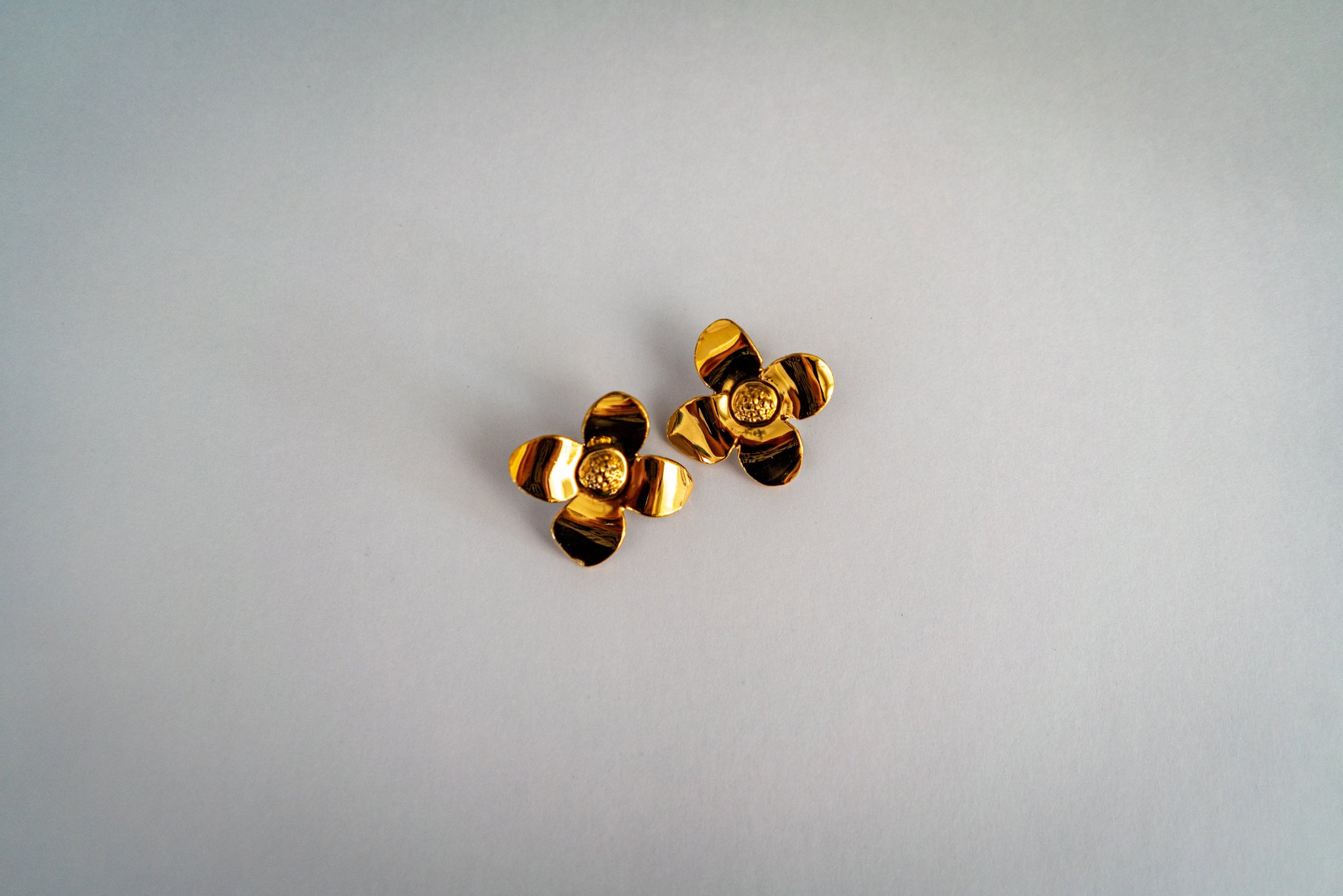 The Breanne stud in the shape of the dogwood flower and completely covered in 22k Gold Luster, is a symbol of renewal and hope. Created with fine Porcelain Bone China and kiln-fired.