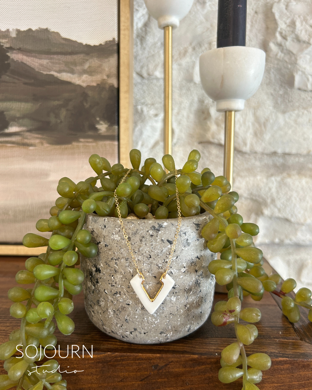 Each piece is unique and may vary slightly in design and in size. Pieces are delicate. Please handle as you would fine china. Metal findings may be cleaned with a polishing cloth. Porcelain may be washed with a mild soap. Take care not to scratch the 22k gold luster. The surface treatment can wear or fade over time and is susceptible to scratching.